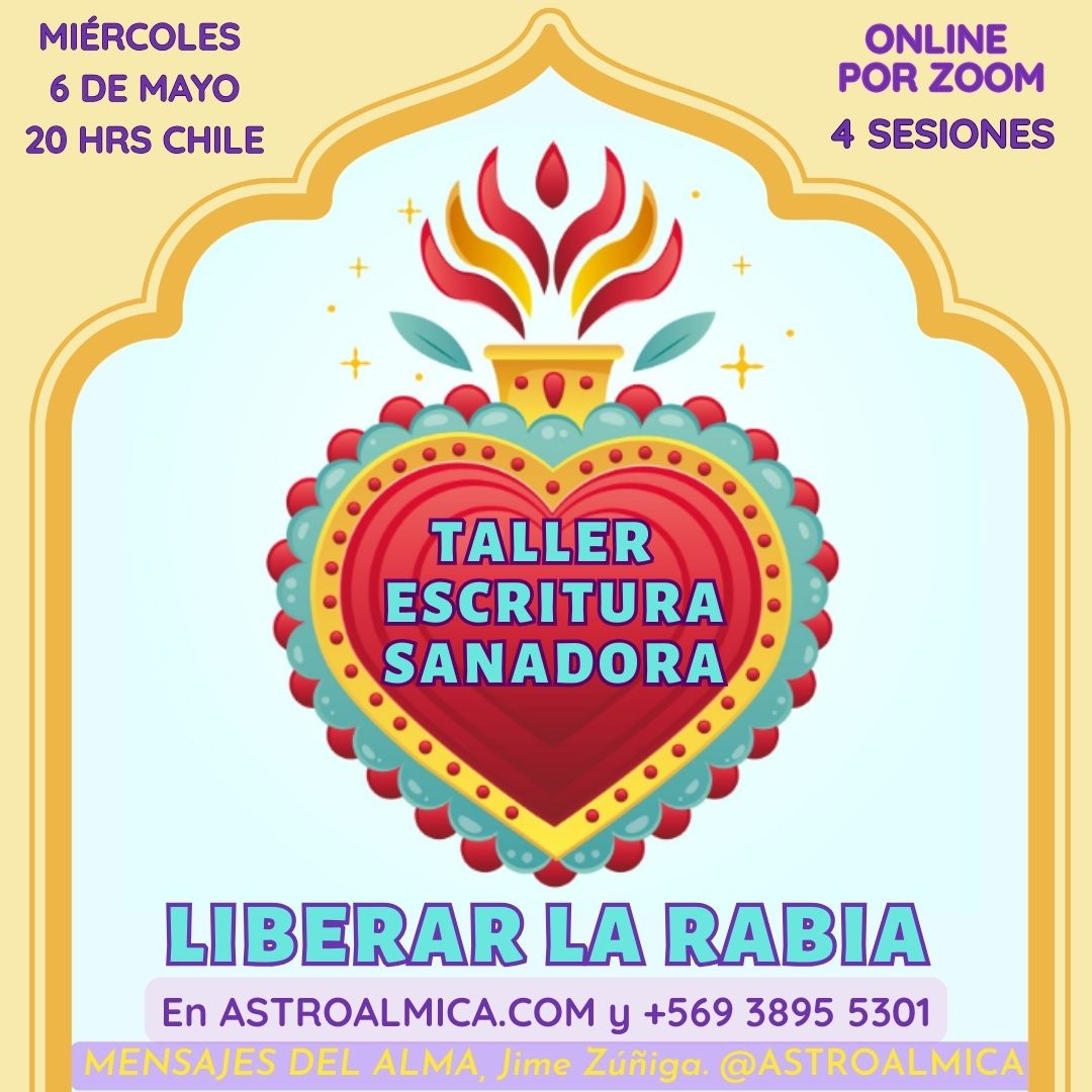 Serán cuatro sesiones, los miércoles de mayo y solo se requiere –además de la pantalla del teléfono, tablet o computador– un cuaderno y un buen lápiz para escribir en los ejercicios personales que realizaremos para que distintos temas de rabias antiguas o recientes se liberen sin culpa y encuentren su justo lugar.